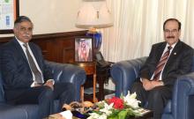Manama, Feb. 19 (BNA): Foreign Affairs Minister Shaikh Khalid bin Ahmed bin Mohammed Al Khalifa, received Pakistani Ambassador to Bahrain, Afzaal Mahmood.