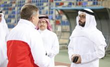 Manama, (BNA): Youth and Sport Affairs Minister Aymen bin Tawfik Almoayyed attended the training of the national football team at the Khalifa Sport City in Isa Town.