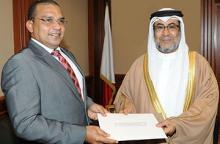 Manama: April 3 – (BNA): Foreign Affairs Minister Shaikh Khalid bin Ahmed bin Mohammed Al Khalifa today received the Ambassador of the State of Palestine to the Kingdom of Bahrain, Taha Abdul-Qader