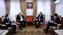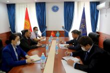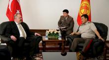 Bishkek, May 20, 2021. / Kabar /. Minister of Defense of Kyrgyzstan Taalaibek Omuraliev met today with newly appointed Ambassador of Turkey to the Kyrgyz Republic, Ahmet Sadik Dogan.