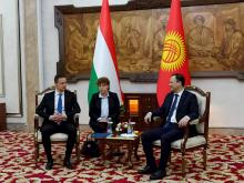 Bishkek, April 8, 2021 . / Kabar / . Minister of Foreign Affairs of Kyrgyzstan Ruslan Kazakbaev held on Thursday a bilateral meeting with his Hungarian counterpart Peter Szijjarto.