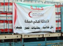 MOKHA, 18th April, 2017 (WAM) -- The Emirates Red Crescent, ERC, yesterday delivered 5000 food packages, 85 tents and 250 blankets to residents of Yemen's Red Sea city of Mokha to help ease the har