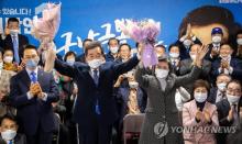 SEOUL, April 16 (Yonhap) -- The ruling Democratic Party (DP) clinched a landslide victory in parliamentary elections, according to preliminary election results released on Thursday, as voters appar