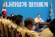 SEOUL, April 14 (Yonhap) -- President Moon Jae-in stressed the importance of close international coordination on both antivirus quarantine and the economy Tuesday in the face of a shift in global o