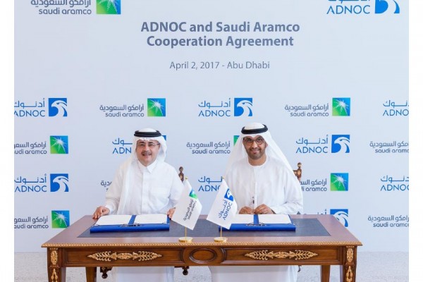 ABU DHABI, 3rd April, 2017 (WAM) -- Saudi Arabian Oil Company, Saudi Aramco, today signed two separate MoUs with Abu Dhabi National Oil Company, ADNOC, and with Masdar, Abu Dhabi’s renewable energy company, covering energy and technology collaboration, renewables, and carbon management.