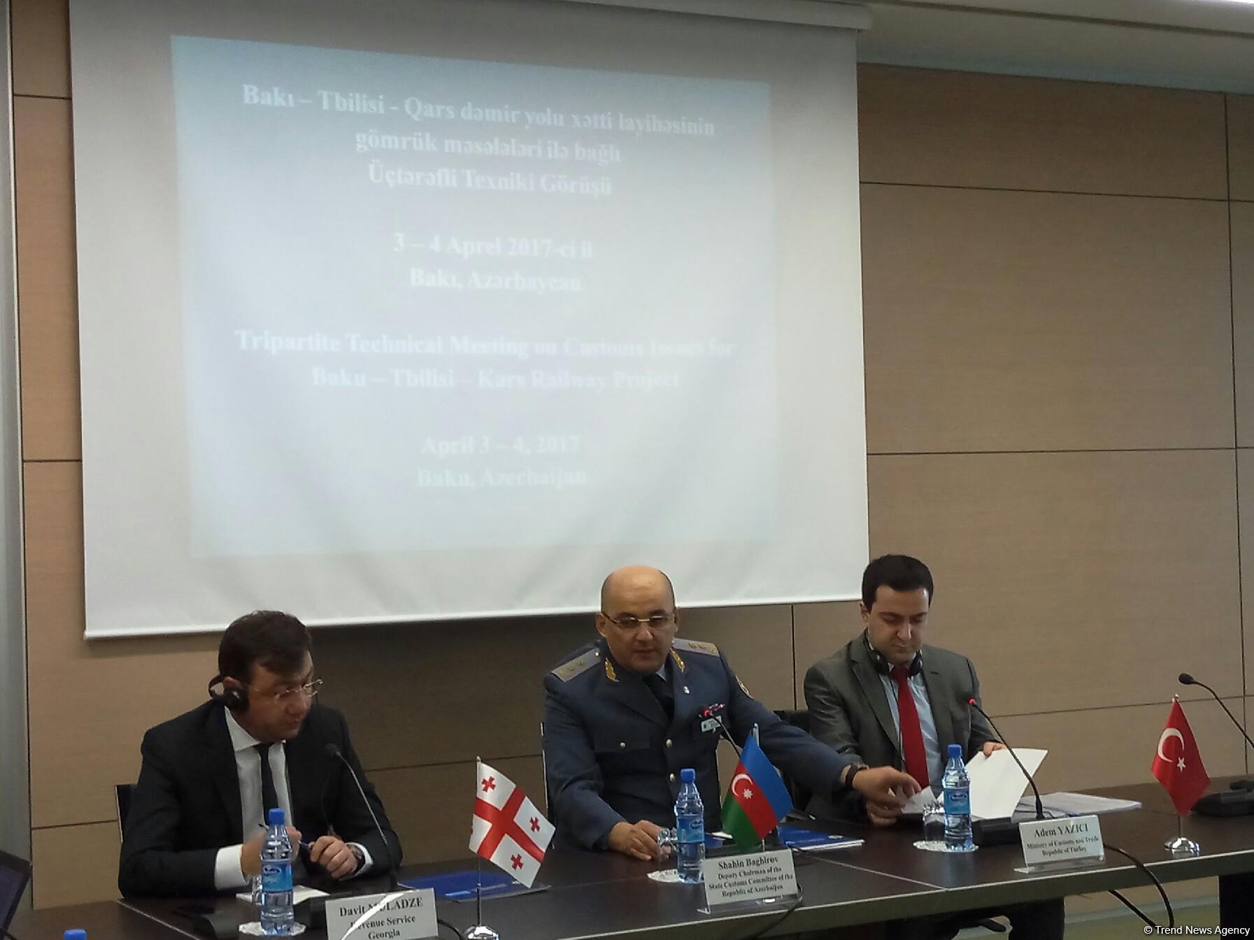 Baku, Azerbaijan, Apr. 3 By Anvar Mammadov – Trend: A meeting of heads of Azerbaijani, Turkish and Georgian customs services will be held in Baku in May 2017, Shahin Baghirov, deputy chairman of the State Customs Committee of Azerbaijan, said. He made the remarks in Baku at a trilateral technical meeting on customs issues regarding the Baku-Tbilisi-Kars (BTK) railway project. He said that types of customs bodies’ activity after the commissioning of the BTK railway will be defined and the corresponding memorandum will be signed at the meeting. “Construction of the BTK railway will be completed soon,” Baghirov said. “Most part of the work has already been completed, and some minor work remains to be done on the Georgian and Turkish sections of the railway. This minor work will be completed in the coming months.” The BTK railway is being constructed on the basis of the Azerbaijan-Georgia-Turkey intergovernmental agreement. Peak capacity of the railway will be 17 million tons of cargo per year. At the initial stage, it will serve one million passengers and transport 6.5 million tons of cargo.