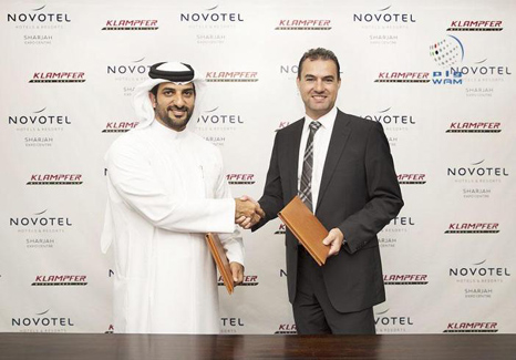 SHARJAH, 14th July, 2016 (WAM) -- A formal agreement to build the prestigious AED120 million Novotel Sharjah Expo, an exclusive business hotel, was signed here between Sheikh Sultan bin Ahmed Al Qasimi, Chairman of Basma Group, and Gunther Hinterberger, Managing Director of Klampfer Middle East.