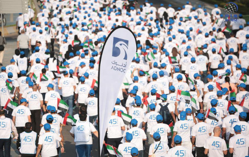 ABU DHABI, 29th November 2016 (WAM) - Over 2,000 Abu Dhabi National Oil Company (ADNOC) Group employees, from across 18 operating companies, walked together, yesterday, from ADNOC’s headquarters to the headquarters of the Abu Dhabi Company for Onshore Petroleum Operations (ADCO), and back, to mark the 45th anniversary of the founding of ADNOC on November 28,1971.