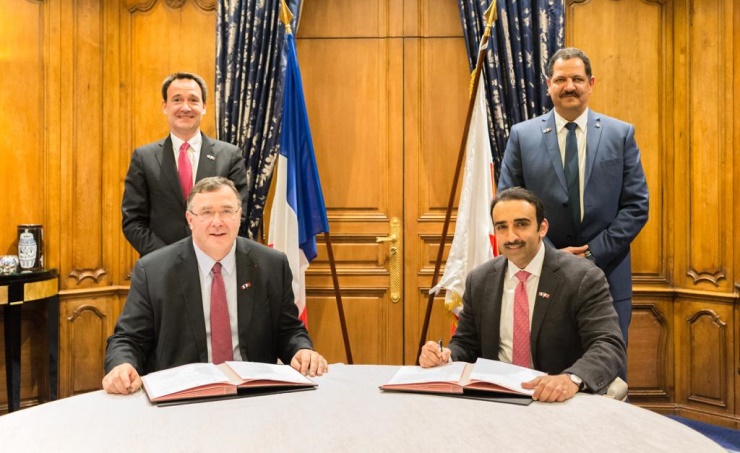 Paris, Apr. 30 (BNA): Shaikh Mohamed bin Khalifa bin Ahmed Al Khalifa, Oil Minister and Chairman of Tatweer Petroleum has signed a Memorandum of Understanding (MoU) between Tatweer Petroleum– Bahrain Field Development Company and Total E&P Activités Pétrolières to cooperate in progressing oil and gas exploration opportunities, knowledge-sharing and the supply of Liquefied Natural Gas (LNG) to the Kingdom of Bahrain. The signing took place as part of an official visit to France by a high level Bahraini delegation led by His Majesty King Hamad bin Isa Al Khalifa, to further enhance ties between the two countries. Patrick Pouyanné, Total’s Chairman and CEO, signed the MoU in the presence of a number of officials from the National Oil and Gas Authority, Tatweer Petroleum, Total and CEOs of other oil and gas companies. Shaikh Mohamed praised the wise leadership led by His Majesty King Hamad bin Isa Al Khalifa, in the development of the petroleum sector which aims to support the national economy. Shaikh Mohamed also praised the excellent relations with Total, which is considered one of the largest oil and gas companies in the world, pointing out the company's high reputation globally and the extensive experience in the field of exploration and production over the decades, especially in the Middle East, with many achievements. Shaikh Mohamed added that the signing of this MoU is a positive step towards the exploitation of natural resources to meet the future energy requirements of the Kingdom of Bahrain. Shaikh Mohamed stated that the MoU will allow for further discussion on collaboration between Tatweer Petroleum and Total, including sharing of experience, expertise and support on ongoing exploration and production activities in the recently discovered unconventional Khalij Al-Bahrain basin, as well as training and development of professionals from Tatweer Petroleum in the fields of LNG trading and oil and gas exploration and production. Pouyanné stated that, "At the occasion of the visit of His Majesty King Hamad to France, Total is very pleased to give a new impetus to its partnership with the Kingdom of Bahrain. We intend to build on our expertise in unconventional oil and gas to contribute to the exploration dynamic driven by Shaikh Mohamed. This agreement also targets to develop cooperation in view of LNG supply for the benefit of the Kingdom of Bahrain." Shaikh Mohamed, affirmed that the National Oil and Gas Authority pays great attention to strengthening relations and enhancing cooperation with all international oil companies and providing all means of supporting to support the Kingdom's energy needs to ensure the continuity of the economy growth and to meet the Kingdom of Bahrain’s vision 2030 through the exploration of oil and gas onshore and offshore and to increase the portfolio of the Oil and Gas Holding Company B.S.C. (c) (nogaholding) by establishing more companies specialized in oil industries and the implementation of several related projects.