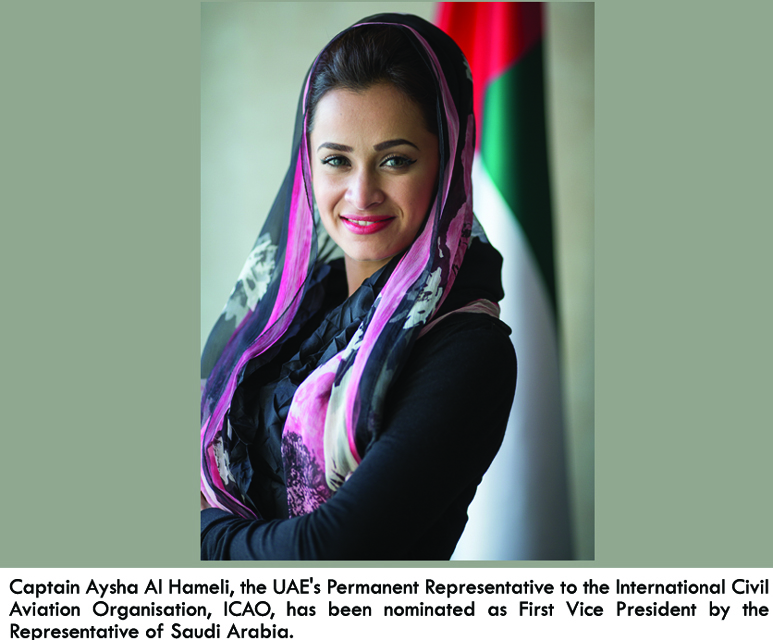 ABU DHABI, 1st November 2016 (WAM) -- Captain Aysha Al Hameli, the UAE's Permanent Representative to the International Civil Aviation Organisation, ICAO, has been nominated as First Vice President by the Representative of Saudi Arabia, Saud Hashem. Her nomination was welcomed and supported by all council members and the ICAO Council agreed with the consensus to elect the UAE Representative as the Council’s First Vice President for the period 2016-2017.
