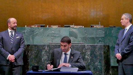 Signing on behalf of the UAE government was Dr. Thani Bin Ahmed Al Zeyoudi, Minister of Climate Change and Environment, who said, "The UAE is proud to be here today to send a united message to the world. We will make Paris Agreement work, and we will work individually and collectively to find the best courses of climate action."
