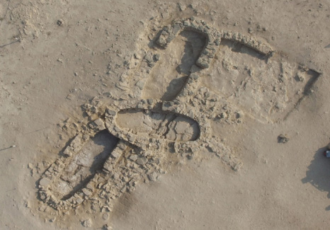 The desert surface of this site is littered with white fragments of ancient wild camel bones. These are the remains of wild camels that were hunted and killed 6,500 years ago. Research has shown that people lured the animals into the soft, wet ground at Baynunah, where the camels would lose their footing and eventually become trapped.