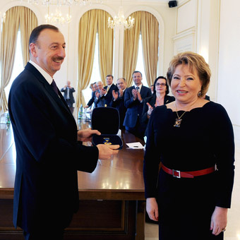 Valentina Matviyenko presented the order to President Ilham Aliyev.