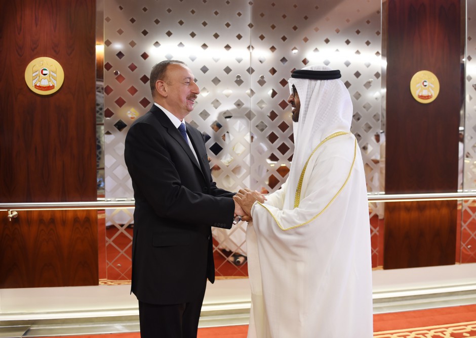 At the Abu Dhabi airport decorated with the national flags of Azerbaijan and the United Arab Emirates, President Aliyev was welcomed by Crown Prince of Abu Dhabi, deputy Supreme Commander of the UAE Armed Forces Mohammed bin Zayed Al Nahyan and other officials.