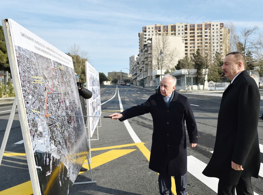President of the Republic of Azerbaijan Ilham Aliyev reviewed Ramiz Guliyev, Rahib Mammadov, Khudu Mammadov and Ashig Alasgar streets, as well as Ganja Avenue after reconstruction and major overhaul in Khatai district, Baku Dec. 29.