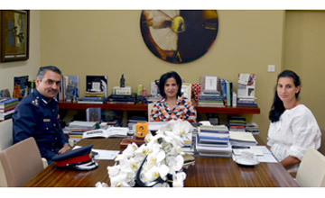 Manama, Aug 8 (BNA): President of Bahrain Authority for Culture and Antiquities (BACA), Shaikha Mai bint Mohammed Al Khalifa, today discussed with Muharraq Police Director, Brigadier Fawaz Hassan Al Hassan, the progress of the Pearl Route project.  The BACA President welcomed the level of cooperation with the Muharraq Police and their support for Muharraq cultural event, mainly Bahrain’s celebrations of Muharraq as the capital of Islamic culture 2018 and the Bahrain Summer Festivals being held near Arad Fort. She attached great significance to cooperation in improving government performance and promoting the national development projects. Brigadier Al Hassan praised the BACA’s effort to highlight Muharraq culture and history, stressing to maintain cooperation.