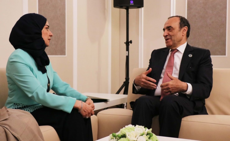 Moscow, July 3 (BNA): Speaker Fouzia bint Abdullah Zainal today met Morocco Parliament Speaker Habib El Maliki, in presence of both countries delegations on the sidelines of International Parliamentary Forum currently held in the Russian Federation’s capital Moscow. Zainal hailed the robust fraternal ties nurtured by His Majesty King Hamad bin Isa Al Khalifa and HM King Mohammad VI, lauding the cooperation, understanding and coordination regarding Arab, regional and international issues. She praised the exemplary constructive and fruitful cooperation in the interest of both brotherly countries and peoples. She stressed the two countries key role in supporting Arab issues especially in view of the present situation and challenges facing the Arab nation that require more Arab integration, cooperation and coordination. She also stressed the compatibility of views between the two countries as well as the significance of boosting economic and commercial cooperation among the Arab countries to activate the joint Arab work in the face of surrounding risks mainly terrorism that poses a direct threat to the security and territorial integrity of Arab countries. The Moroccan Speaker affirmed the distinguished fraternal ties featuring understanding, amity and shared vision between the two countries leaderships, affirming Morocco’s unwavering stances in support of Bahrain’s right to its safety and stability, praising the solid Bahraini stance in supporting Morocco’s sovereignty over its Sahara region. Al Maliki affirmed his country’s keenness on bolstering its cooperation with the Kingdom of Bahrain in various fields. He invited the Bahraini speaker to visit Morocco Kingdom to activate the joint cooperation and friendship committees between the two countries.