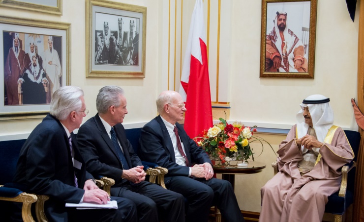 HRH the Premier was speaking as he receives at Gudaibiyah Palace today former US Ambassador to Bahrain and member of the Middle East Policy Council Ronald Neumann, council Chairman Richard Schmierer and Executive Director Dr. Thomas R. Mattair. He hailed the delegation's visit to Bahrain, lauding the council's efforts to boost common understanding of issues related to regional security and stability. He underlined the key role played by research centres to foster understanding and communication between people and build a collective global vision on regional and international challenges mainly in the political, economic and social fields. He pointed out the need for joint cooperation to promote global security and stability as a pre-requisite to ensure sustainable development.