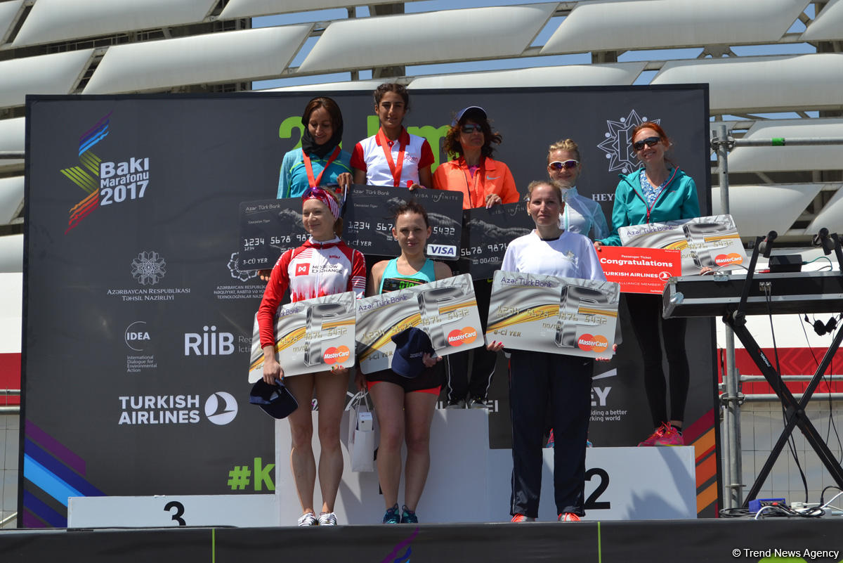 Awards for Baku Marathon-2017 were granted in two categories. Winners of the first places in both men`s and women`s categories will be awarded 3,000 manats, whereas the second and third place winners will get 2,000 and 1,000 manats respectively along with gifts, medals and certificates.