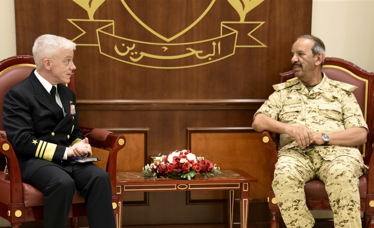 Manama, Oct. 29 (BNA): Commander-in-Chief of Bahrain Defence Force (BDF) Field Marshal Shaikh Khalifa bin Ahmed Al Khalifa received today Vice Admiral Jim Malloy, the US Naval Forces Central Command and Fifth Fleet Commander. The meeting was held on the sidelines of Bahrain International Defence Exhibition and Conference (BIDEC 2019), in the presence of Defence Minister Lieutenant General Abdullah bin Hassan Al Nuaimi and Chief of Staff Lieutenant General Dhiab bin Saqr Al Nuaimi.