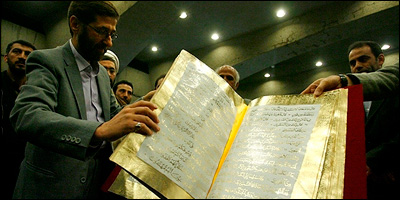 Inscribed by Alireza Behdani, the 604-page book in 50x70cm format was completed in 114 weeks.
