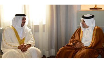 Manama, June 10 (BNA): His Royal Highness Prince Salman bin Hamad Al Khalifa, Crown Prince, Deputy Supreme Commander and First Deputy Prime Minister met Dr. Abdullah Mohammed Al Rayes, Director General of National Archives at the United Arab Emirates (UAE) Ministry of Presidential Affairs and Dr. Shaikh Khalid bin Khalifa Al Khalifa, Deputy Chairman of Isa Cultural Centre’s Board of Trustees and Executive Director of the Isa Cultural Centre, at Riffa Palace.