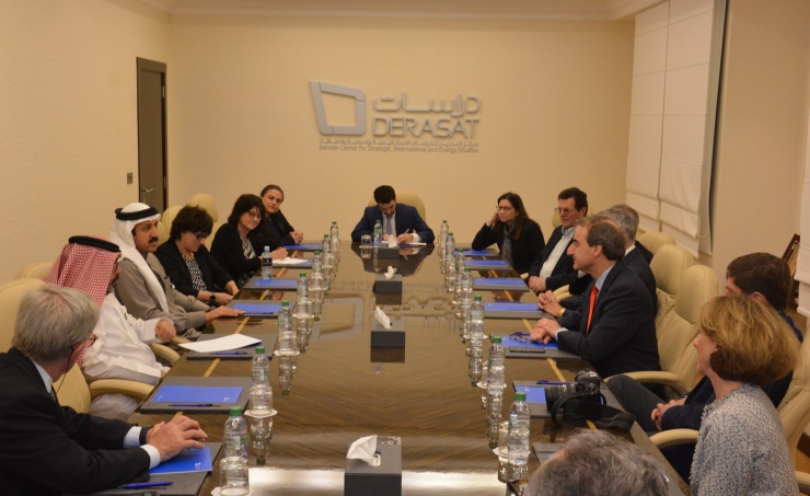 Manama, Dec.12 (BNA): Bahrain Center for Strategic, International and Energy Studies (Derasat) Board of Trustees’ Chairman Dr. Shaikh Abdulla bin Ahmed Al-Khalifa, Chairman of the met with a delegation from the American Jewish Committee ‘AJC’, currently visiting the Kingdom of Bahrain. The meeting was held in the Center’s premises in Awali. Dr. Shaikh Abdulla welcomed members of the visiting delegation, praising the historical and close partnership relations that bring the Kingdom of Bahrain and the United States together in the context of close and distinguished friendly relations, based on long decades of shared values and basics. During the meeting, the Chairman gave an overview of the enduring strong ties between both friendly nations, and the productive cooperation in various areas political, economic, military, security, cultural, and research fields; leading to the exchange of benefits, enhancing development and prosperity, and laying the foundations of security and stability in the region. Dr. Shaikh Abdulla pointed to the Kingdom of Bahrain’s participation in regional and international alliances aimed at countering terrorism, ensuring the freedom of shipping routes and maritime security, and facing interferences and practices that contradict the fundamentals of international law. He addressed the Kingdom’s efforts in countering extremism and terrorism; in its ideological, financial, and practiced phases, asserting that Bahrain is an active partner in fighting all kinds of terrorism, with both countries sharing this posture to confront the danger of terrorist organizations. Dr. Shaikh Abdulla also discussed the most prominent achievements and gains from reform and development the Kingdom of Bahrain reached under the leadership of His Majesty King Hamad bin Isa Al-Khalifa, revealing how the reform approach has been comprehensive, integrated, renewed, and successful in devoting democratic practices and popular participation, under the state of law and institutions, and the separation of authorities. Derasat’s Chairman pointed out the high and advanced placement the Kingdom of Bahrain has achieved among countries of the world in tolerance and moderation; considered a pioneering civilized humanitarian model to be copied in peaceful coexistence in its broader concept, not limited to religious freedoms but rather set on strong foundations of comprehensive reform, sustainable development, enacted justice, and protected human rights; exhibiting the Kingdom’s efforts and initiatives in this area, such as establishing the King Hamad Global Center for Peaceful Coexistence. Dr. Shaikh Abdulla called for reaching consensual political solutions for the region’s crises, by means that ensure a secure and stable life for its people, while protecting national institutions, welcoming the values of the Middle East Strategic Alliance ‘MESA’, and showing confidence in its positive contribution to bolster the region’s security and prosperity. The Chairman also described the Kingdom’s hosting of the ‘Peace to Prosperity’ workshop as an initiative for better development, education, and living for the people of the region, especially the Palestinian people, in addition to providing, in addition to providing the suitable environment for peace. His Excellency expressed Derasat’s readiness to enhance intellectual and research engagement with members of the Committee, especially in the area of religious freedoms, and spreading tolerance and moderation. On their part, members of the American Jewish Society sincerely thanked Dr. Shaikh Abdulla for hosting them and extensively briefing the Committee on relations between the two friendly nations, and current developments in the region; expressing their appreciation for the positive role the Kingdom of Bahrain plays in enhancing the concepts of religious freedoms, peace, and coexistence; wishing the Kingdom lasting progress and prosperity.