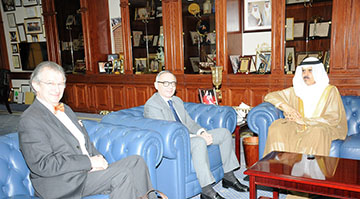 Manama, Oct. 29 (BNA): Education Minister Dr. Majid bin Ali Al-Nuaimi received here today the Senior Advisor at the French Embassy in the Kingdom of Bahrain Jean-Paul Ghoneim and Cooperation and Cultural Action Counsellor Dominique Chastres to discuss matters pertaining to developing French School of Bahrain.