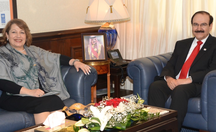 Manama, Mar. 28 (BNA): Electricity and Water Affairs Minister Dr. Abdulhussain Mirza received Egyptian Ambassador to Bahrain Suha Ibrahim Al-Far and praised bilateral relations. The minister reviewed ways to enhance cooperation in projects implemented in the electricity, water and renewable energy sectors, especially those in the field of sustainable energy in Bahrain and the possibility of increasing the mutual benefit of expertise and experience between the two countries. Dr. Mirza said Bahrain always sought to benefit from the experiences of brotherly and friendly countries to achieve all national goals in providing clean and sustainable energy. The ambassador expressed sincere thanks and appreciation to the minister for the warm welcome and hospitality, stressing keenness to develop cooperation between Bahrain and Egypt especially in the electricity and water field.