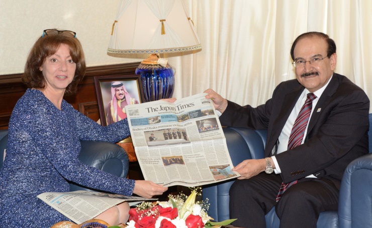 Manama, Jan. 23 (BNA): Electricity and Water Affairs Minister Dr. Abdulhussain Mirza received Nathalie Martin from economic organisation Global Insight. Ms. Martin is currently in Bahrain to prepare a special economic report on the kingdom in cooperation with The Japan Times. During the meeting, the minister welcomed Ms. Martin and reviewed the details of the next issue of the foundation's report. Dr. Mirza presented a comprehensive explanation of the achievements and projects in the electricity, water and sustainable energy sectors as well as the most important plans in the next five years. Ms. Martin thanked and appreciated the minister for the welcome and the hospitality and for his cooperation and support to Global Insight.