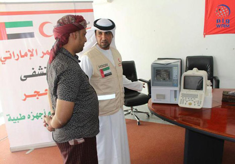 MUKALLA, 13th November, 2016 (WAM) -- The Emirates Red Crescent on Saturday delivered state-of-the-art medical equipment to a hospital in the Hajr district in the southern Yemeni governorate of Hadramaut as part of the UAE's continued efforts to improve healthcare in the country.