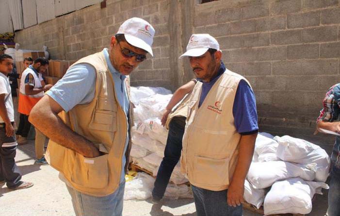The relief aid, which included food stuff, health materials, blankets, children's milk and potable water, was distributed in cooperation with the Palestinian Red Crescent and The International Committee of the Red Cross.
