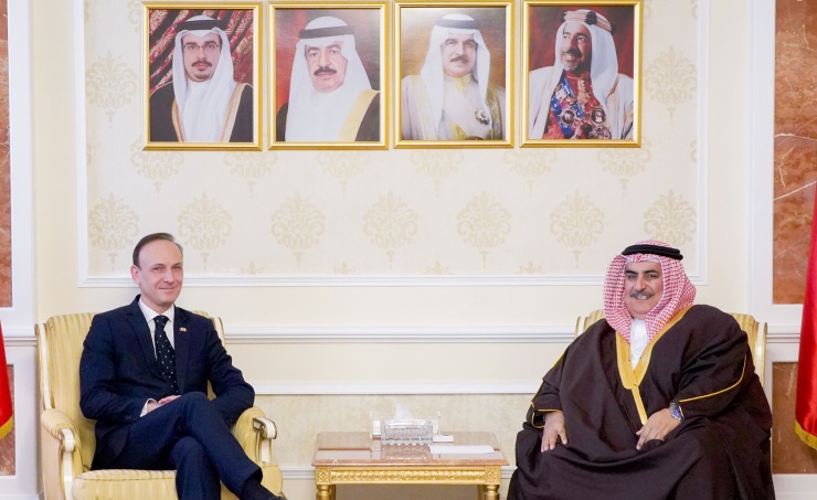 Manama, Mar. 21 (BNA): Foreign Affairs Minister Shaikh Khalid bin Ahmed bin Mohammed Al Khalifa received Republic of Italy's Undersecretary of State for Foreign Affairs and International Cooperation, Guglielmo Picchi. The minister welcomed the Italian Undersecretary of State for Foreign Affairs whose visit to the Kingdom of Bahrain comes within the framework of the continuous communication between the officials of the two friendly countries and reflects the advanced bilateral friendship ties and the two countries’ keenness to embark on broader cooperation at all levels. He stressed Bahrain's keenness to develop mutual coordination with Italy on various issues to promote the interests of both countries and peoples. The Italian guest took pride in meeting with the Minister of Foreign Affairs and commended the progress of bilateral relations in various fields, wishing Bahrain further development and prosperity.