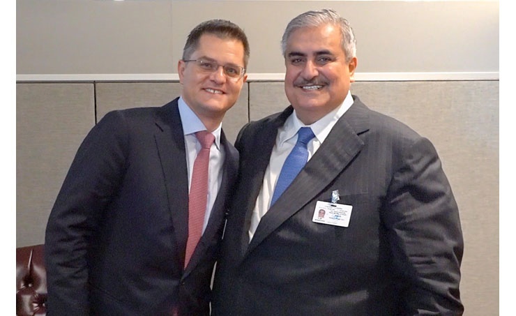 New York, Sept. 25 (BNA): The Minister of Foreign Affairs, Shaikh Khalid bin Ahmed bin Mohammed Al Khalifa, met with the President of the 67th Session of the United Nations General Assembly, Mr. Vuk Jeremić, on the sidelines of the 73rd Session of the United Nations General Assembly in New York City. During the meeting, the Minister of Foreign Affairs praised the efforts made by Mr. Jeremić for developing and enhancing the role of the UN General Assembly during his presidency of the 67th session. He also commended his keenness to increase cooperation with the Kingdom of Bahrain and enhance international cooperation to meet the challenges facing the international community, wishing him further success and prosperity. For his part, Mr. Jeremić expressed his pride in meeting with the Minister of Foreign Affairs, and commended the Kingdom of Bahrain's policy of constant cooperation with the United Nations in all its organs and its keenness to support the efforts to establish security and peace all over the world, wishing the Kingdom of Bahrain further progress and prosperity.
