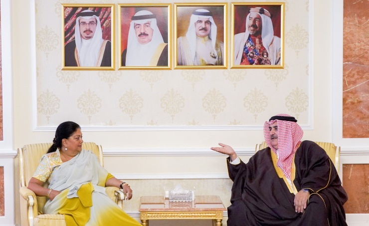 Manama, Mar. 27 (BNA): The Minister of Foreign Affairs, Shaikh Khalid bin Ahmed bin Mohammed Al Khalifa, met today the former Chief Minister of Rajasthan of the Republic of India, Vasundhara Raje, in the presence of the Undersecretary of the Gulf Division in the Indian Ministry of External Affairs, Dr. T.V. Nagendra Prasad, who are currently visiting the Kingdom of Bahrain.