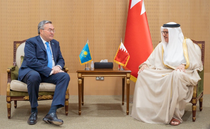 Riyadh, Sept. 7 (BNA): Minister of Foreign Affairs, Dr. Abdullatif bin Rashid Al-Zayani, met here today the Deputy Prime Minister and Minister of Foreign Affairs of the Republic of Kazakhstan, Mukhtar Tileuberdi, on the sidelines of the first joint ministerial meeting of the strategic dialogue between the foreign ministers of the Gulf Cooperation Council and Central Asian countries. During the meeting, the two ministers reviewed the close friendship and cooperation relations between Bahrain and Kazakhstan in various fields, and ways to intensify cooperation between the two friendly countries and further develop it to serve mutual interests, in addition to discussing a number of topics and issues of common concern.