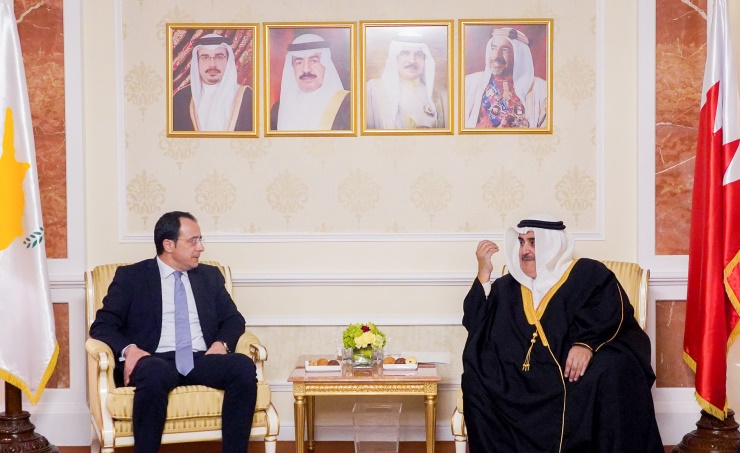 Manama, Mar. 13 (BNA): The Minister of Foreign Affairs, Shaikh Khalid bin Ahmed bin Mohammed Al Khalifa, today received Minister of Foreign Affairs of the Republic of Cyprus, Nikos Christodoulides, who is on a visit to the Kingdom of Bahrain.
