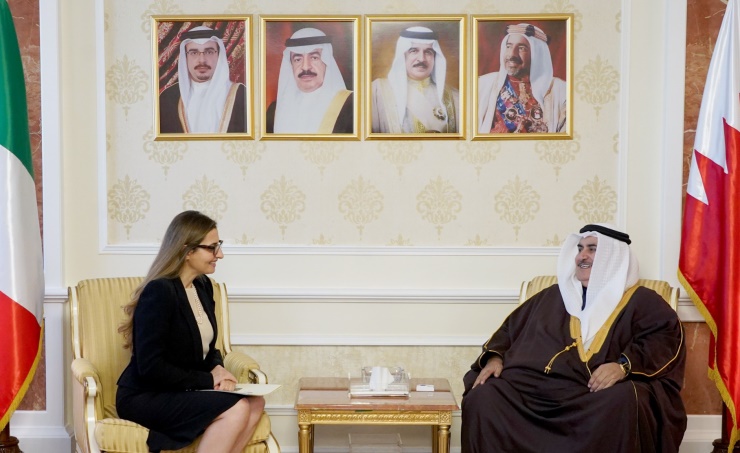 Manama, Jan. 19 (BNA): Minister of Foreign Affairs, Shaikh Khalid bin Ahmed bin Mohammed Al Khalifa, received in his office at the Ministry’s General Court today, Mrs. Paola Amadei, who presented a copy of her credentials as Ambassador-Designate of the Italian Republic to the Kingdom of Bahrain.
