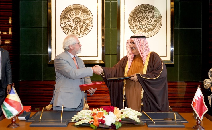 Manama, Jan. 15 (BNA): The Minister of Foreign Affairs, Shaikh Khalid bin Ahmed bin Mohammad Al Khalifa, signed a number of agreements and memorandums of understanding between the Kingdom of Bahrain and the Republic of Seychelles, with the Minister of Finance, Trade and Economic Planning of the Republic of Seychelles, Maurice Loustau-Lalanne. The signing took place on the sidelines of the official visit of Seychelles President Danny Faure to the Kingdom of Bahrain.