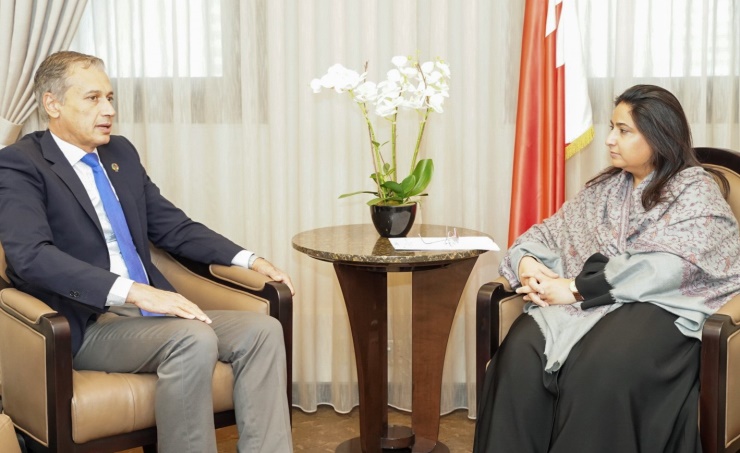 Dr. Shaikha Rana welcomed the UN official and affirmed the Kingdom of Bahrain's keenness to enhance partnership with the United Nations and its specialised agencies, and to continue cooperation and joint coordination at various levels to meet common aspirations.