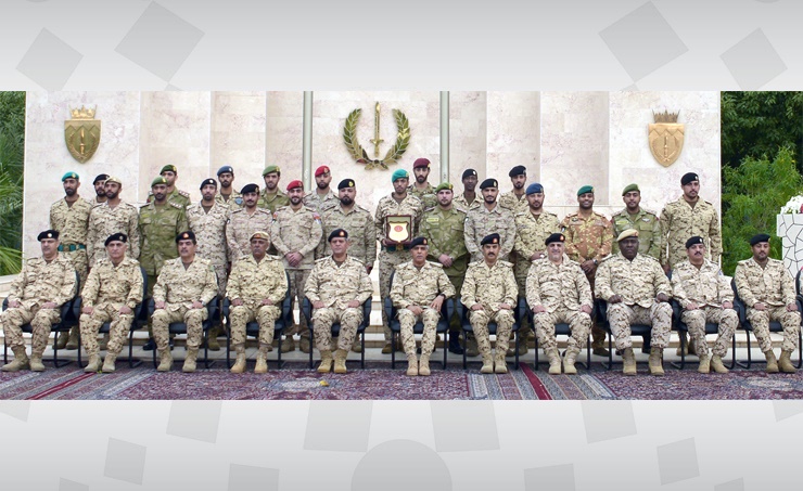 Manama, Feb. 26 (BNA): Bahrain Defence Force (BDF) Chief of Staff Lieutenant-General Dhiyab bin Saqr Al Nuaimi attended the graduation ceremony of officers who participated in an advanced infantry course. The ceremony was held under the patronage of BDF Commander-in-Chief Field Marshal Shqikh Khalifa bin Ahmed Al Khalifa. The Chief of Staff presented certificates to the graduating officers and appreciation awards to the outstanding participants. He congratulated them on successfully completing the course and fulfilling the graduation requirements.