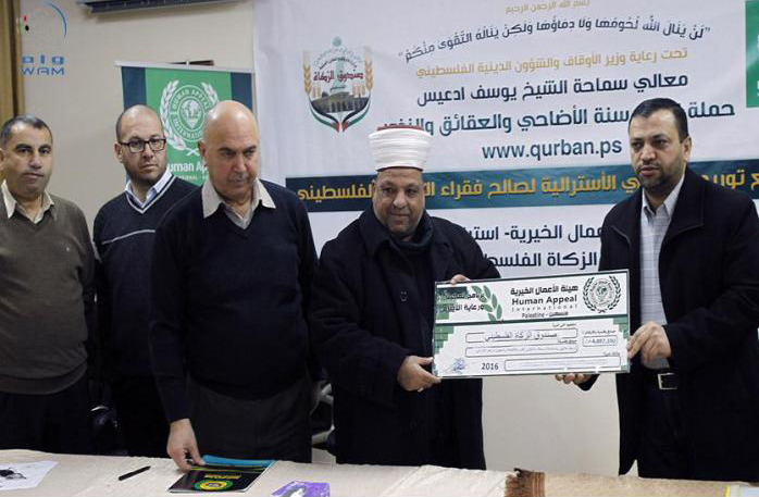 Ibrahim Rashid, Commissioner of the Authority in the West Bank, said that an amount of Dh4.887 million was handed over to the Palestinian Minister of Awqaf and Religious Affairs, Sheikh Yusuf Adeis, for the benefit of the Zakat Central Committees, while Dh1.622 million was given for the Palestinian charitable organisations.