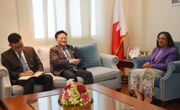 Manama, Apr. 24 (BNA): Health Minister Faeqa bint Saeed Al Saleh received Ju Myong Chol the Kuwait-based Chargé d’Affaires and Head of Mission of the Democratic People's Republic of Korea (DPRK).
