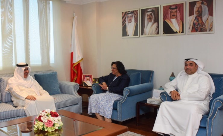 Manama, Dec. 30 (BNA): Health Minister Faeqa Saeed Al Saleh received Ambassador of Bahrain to the United Kingdom, Shaikh Fawaz bin Mohammed Al Khalifa, and praised the embassy’s efforts in boosting the Bahrain-UK longstanding friendship ties, wishing the ambassador success in bolstering the bilateral ties between the two friendly countries in various fields. Al Saleh thanked the ambassador for his diligence to discuss topics pertaining to medical treatment abroad in the interest of Bahraini citizens. She praised the embassy’s efforts in supporting the Bahraini patients who follow up medical treatment in the United Kingdom. They discussed important matters to activate the communication, cooperation and coordination in the health fields between the Ministry of Health (MoH) and the Kingdom of Bahrain’s Embassy in the United Kingdom, regarding the procedures and follow up of various topics to smoothen patients' medical treatment abroad until their return safe and sound. They also discussed available means to attract British medical expertise and training. MoH’s Undersecretary Dr. Waleed Khalifa Al Manea, was also present during the meeting.