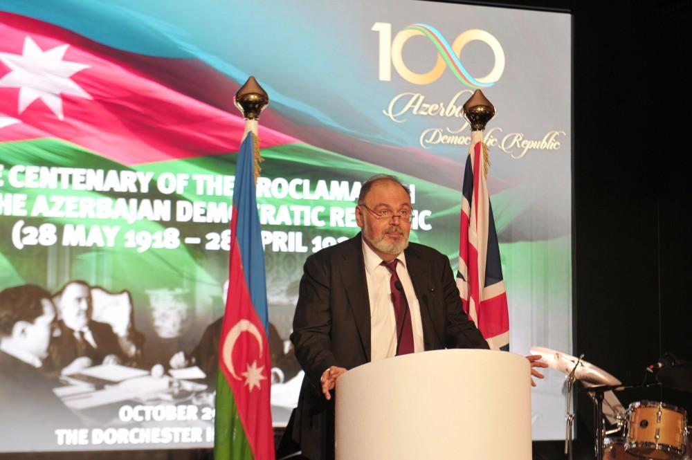 The UK Prime Minister's Trade Envoy, member of the House of Lords Baroness Emma Nicholson congratulated the event participants and the people of Azerbaijan on the centenary of the Azerbaijan Democratic Republic. She described the founding of the first democratic republic in the East 100 years ago as a landmark historic event.