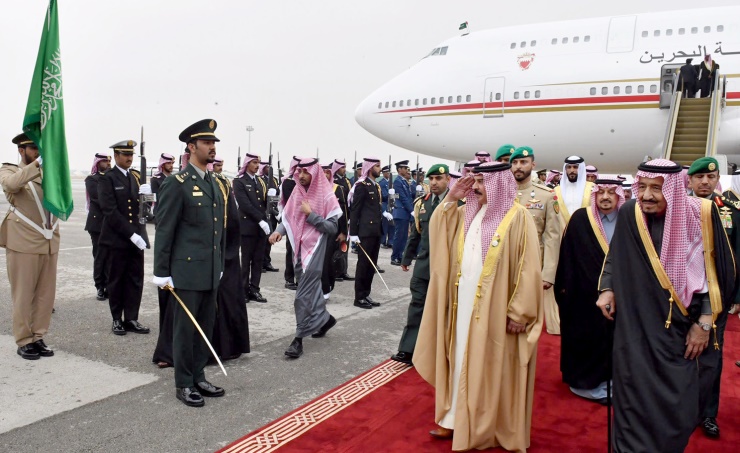 His Majesty was welcomed by the Custodian of the Two Holy Mosques King Salman bin Abdulaziz Al Saud, His Royal Highness Prince Faisal bin Bandar bin Abdulaziz Al Saud the Governor of Riyadh Region, and GCC Secretary-General Dr. Abdullatif bin Rashid Al Zayani.
