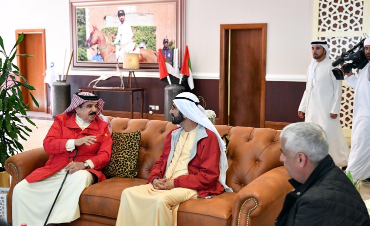 Manama, Mar.2 (BNA): His Majesty King Hamad bin Isa Al-Khalifa and UAE Vice President, Prime Minister and Dubai Ruler His Highness Shaikh Mohammed bin Rashid Al-Maktoum attended the 17th edition of the international endurance race on His Majesty the King’s Cup. The Bahrain Royal Equestrian and Endurance Federation (BREEF) organized the 160-kilometre-long race, which is sponsored by the Gulf Finance House (GFH). Riders from the Kingdom of Bahrain and the United Arab Emirates took part. His Majesty King Hamad bin Isa Al-Khalifa and UAE Vice President, Prime Minister and Dubai Ruler His Highness Shaikh Mohammed bin Rashid Al-Maktoum were received by HM the King’s Representative for Charity Works and Youth Affairs, Supreme Council for Youth and Sports Council (SCYS) Chairman, Bahrain Olympic Committee (BOC) President and Bahrain Royal Equestrian and Endurance Federation (BREEF) Honorary Chairman His Highness Shaikh Nasser bin Hamad Al-Khalifa, a number of BREEF board members. HH Shaikh Nasser bin Hamad Al-Khalifa briefed HM His Majesty King Hamad bin Isa Al-Khalifa and UAE Vice President, Prime Minister and Dubai Ruler His Highness Shaikh Mohammed bin Rashid Al-Maktoum about the race the riders. HM the King met UAE Ambassador to Manama Shaikh Sultan bin Hamdan bin Zayed Al-Nahyan, commending string bilateral relations binding the the Kingdom of Bahrain and the United Arab Emirates. The sponsors of the race also greeted HM the King. HM the King congratulated the winning riders on their impressive performance, stressing the importance of such events in enhance their readiness to compete in regional and international championships. He commended the successful efforts exerted by HH Shaikh Nasser bin Hamad Al-Khalifa to develop the endurance sport, being one of the most authentic Arab sports, and encourage Bahraini youth. He expressed deepest thanks to His Highness Shaikh Mohammed bin Rashid Al-Maktoum, for his visit, commending the participation of the Emirati riders, which reflects deep-rooted fraternal relations binding the two fraternal countries and peoples. HH Shaikh Mohammed bin Rashid Al-Maktoum also expressed deepest thanks to HM the King for the warm welcome and hospitality, commending the role and efforts exerted by HH Shaikh Nasser bin Hamad Al-Khalifa. HH Shaikh Nasser bin Hamad Al-Khalifa then honoured three winners Royal Team’s Victorious rider Celestia Garcia, UAE M7 Stable rider Salem Al-Kutbi and Victorious stable rider Shaikh Mohammed bin Mubarak Al-Khalifa.