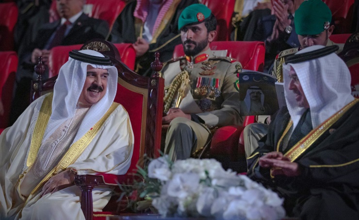 HM the King was received on arrival at the Bahrain National Stadium by the Minister of Interior General Shaikh Rashid bin Abdulla Al-Khalifa as the artillery fired a 21-gun salute to welcome HM the King.