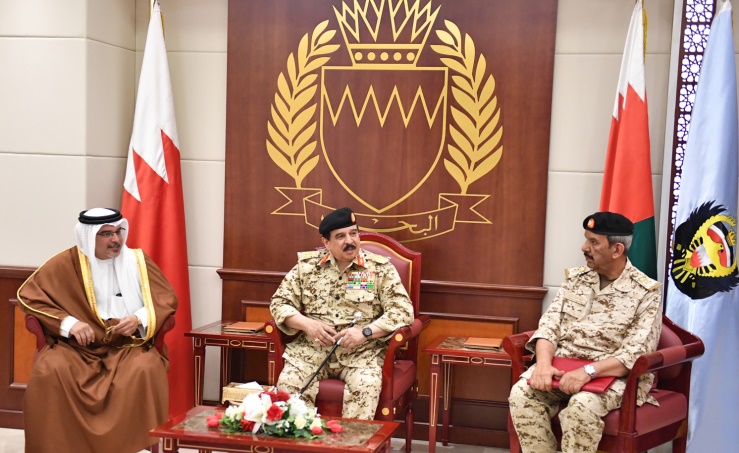 HM the King paid a visit today to BDF General Command headquarters where he was welcomed by Commander-in-Chief Field Marshal Shaikh Khalifa bin Ahmed Al Khalifa, Minister of Defence Lieutenant General Abdullah bin Hassan Al Nuaimi and senior officers. HM was accompanied during the visit by Royal Guard Commander Major General Shaikh Nasser bin Hamad Al Khalifa.