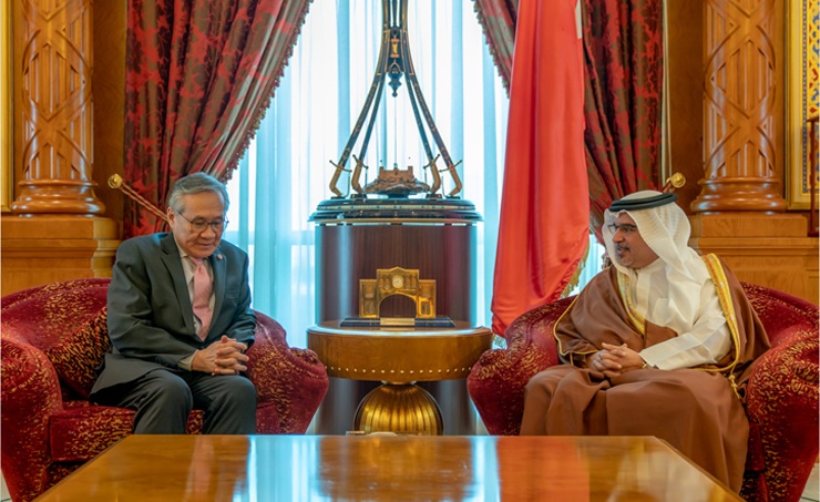 Manama, Feb. 10(BNA): His Royal Highness Prince Salman bin Hamad Al Khalifa, Crown Prince, Deputy Supreme Commander and First Deputy Prime Minister today received the Minister of Foreign Affairs of the Kingdom of Thailand, His Excellency Don Pramudwinai, at Gudaibiya Palace. During the meeting, HRH the Crown Prince and HE the Minister of Foreign Affairs discussed bilateral relations between Bahrain and Thailand and reviewed areas of mutual interest